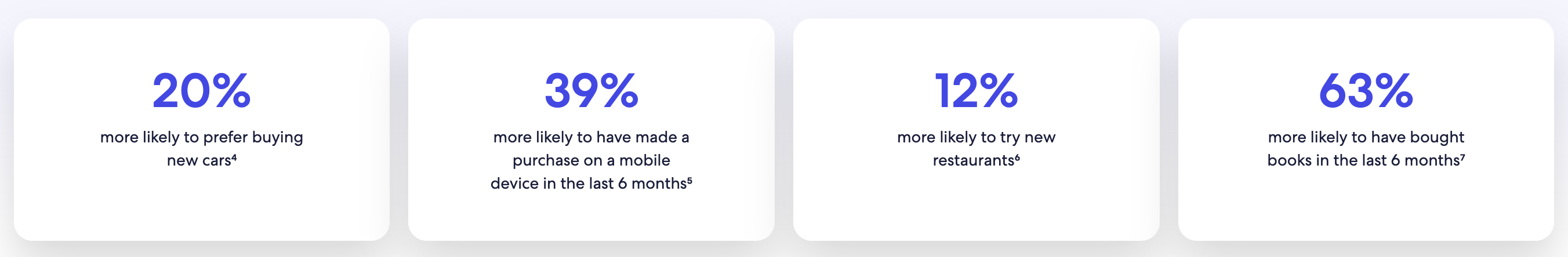 Not only are our consumers ready and willing to buy, but they’re also willing to spend more on luxuries and new purchases. Their buying power spans every category, but here’s a quick glance at some specific areas.