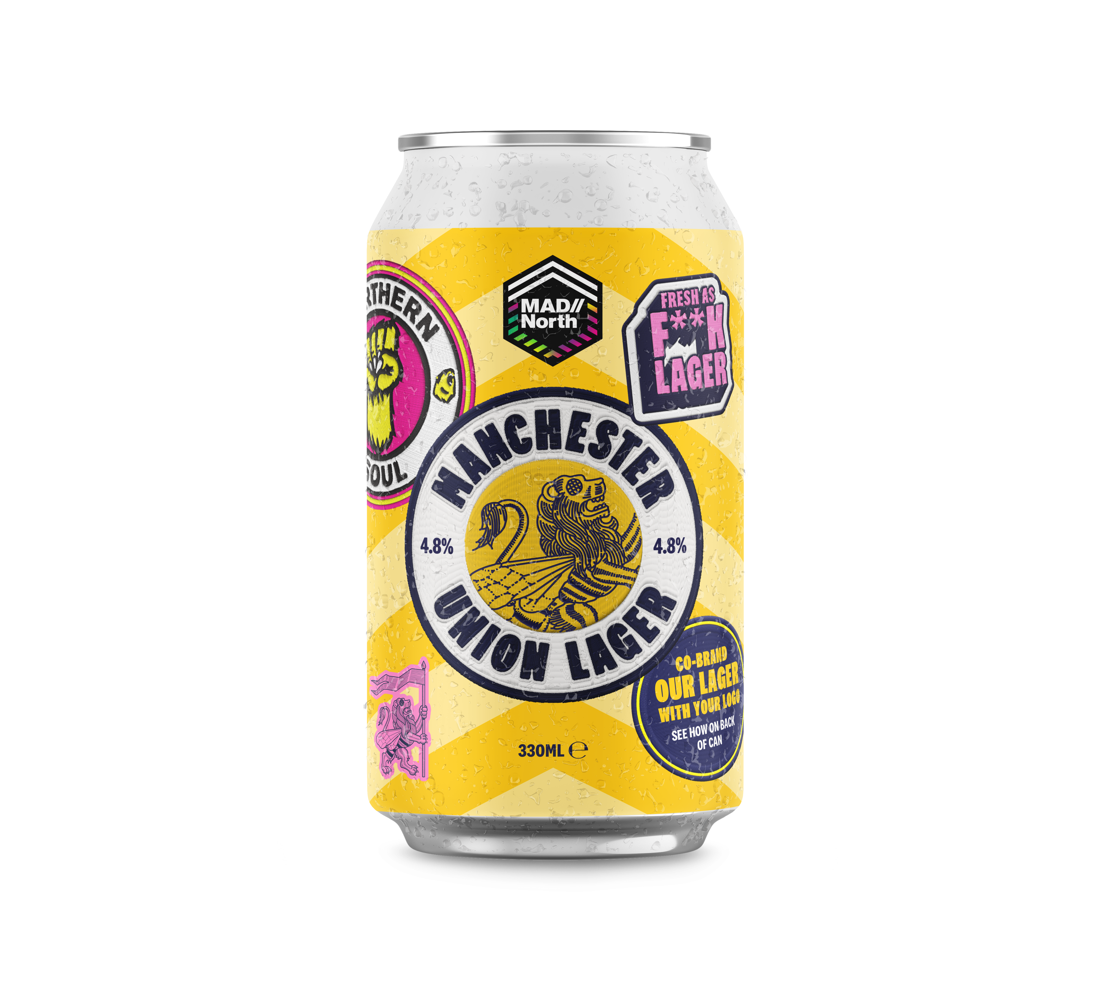MAD//North is proud to unveil the official can design for its special edition lager, created in partnership with Manchester Union Brewery, and to announce that The Trading Route, the brewery’s bar in directly opposite Aviva Studios, will be the official bar of MAD//North, and host of the MAD//Sports Clubhouse next week.