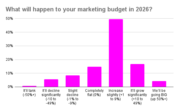 Despite uncertainty in the market, businesses are not slashing marketing budgets for the year ahead. In fact, 70% of the leaders surveyed expect growth in their budget for 2026 compared to just 15% that predict a decline.
